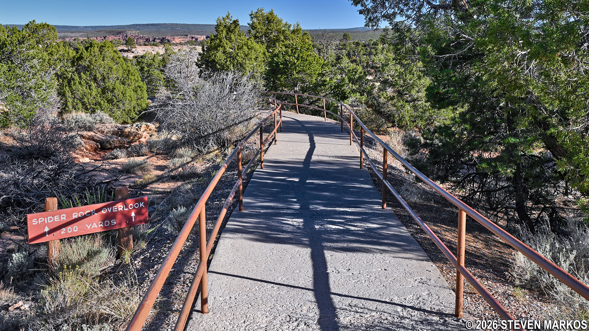 Non-wheelchair-accessible observation deck at the Spider Rock Overlook on South Rim Drive, Canyon de Chelly National Monument