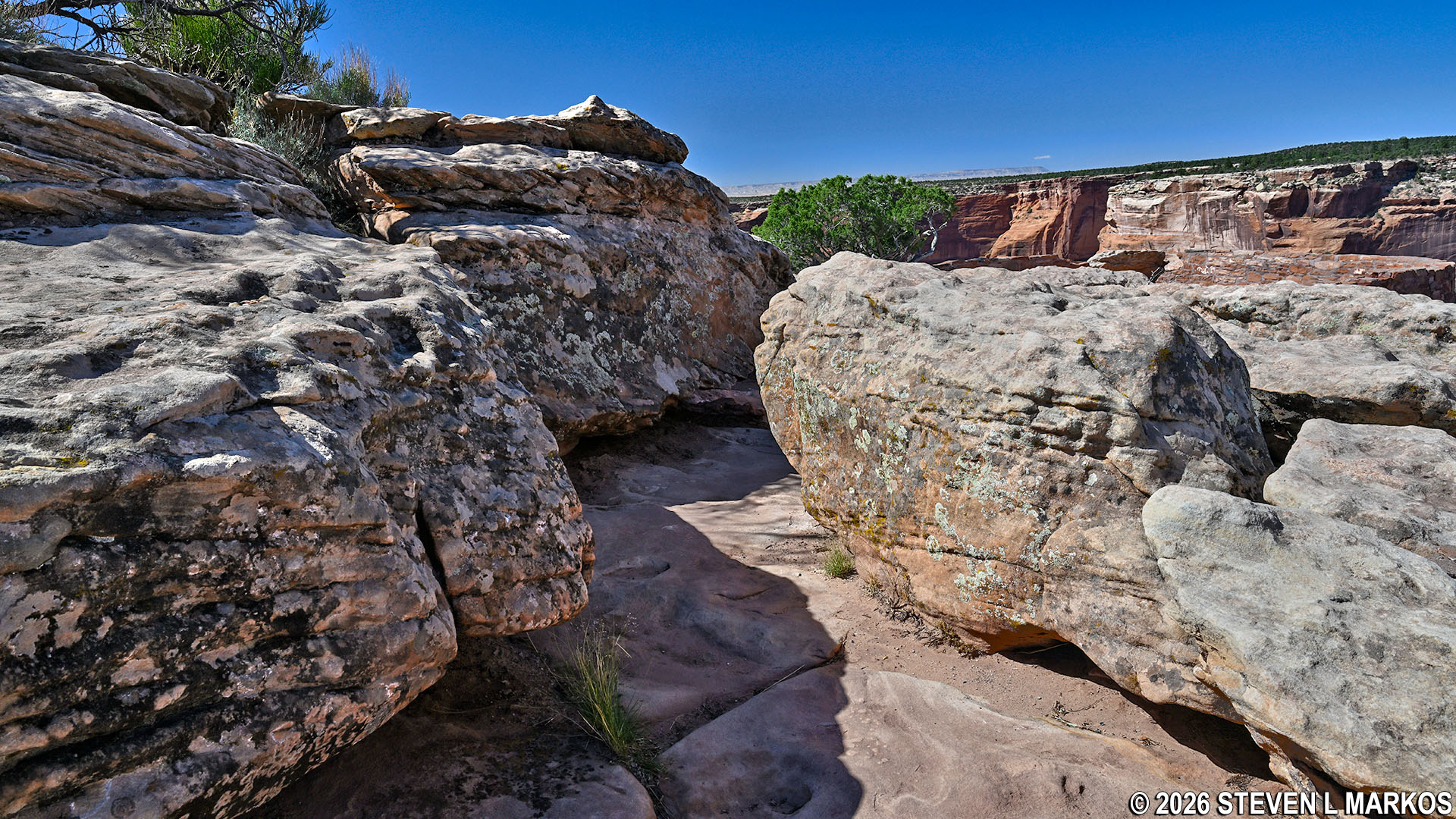 Large boulders on the path to the third viewpoint of the Spider Rock Overlook on South Rim Drive, Canyon de Chelly National Monument