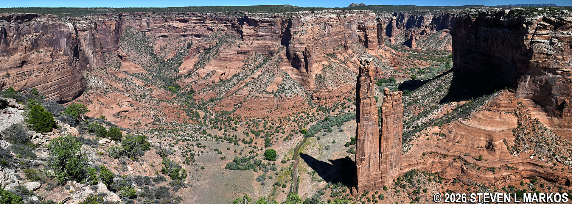 Panoramic view from the Spider Rock Overlook at Canyon de Chelly National Monument (click to enlarge)