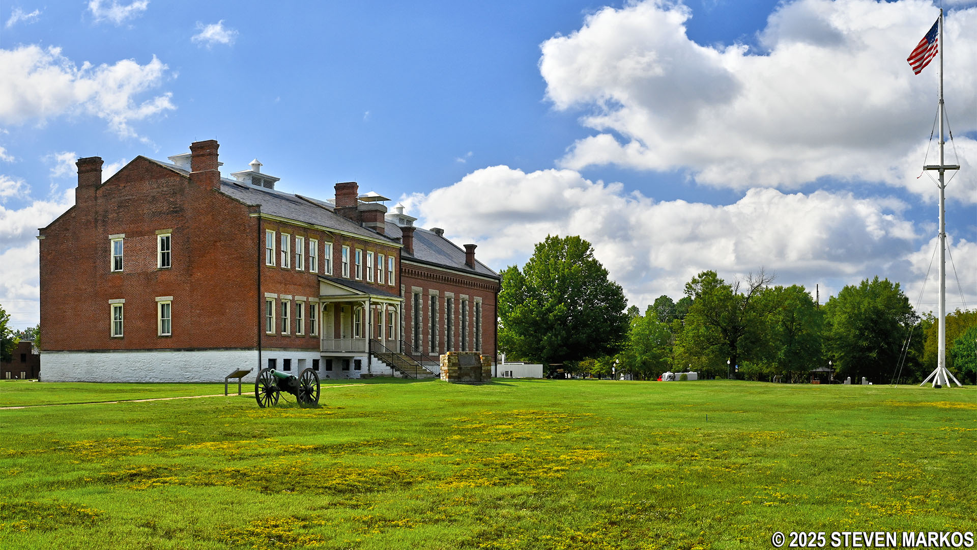 Fort Smith National Historic Site was established in 1961 to preserve the physical and cultural landscape, along with archeological resources, of the first and second Fort Smiths, including the time period when it was used as a federal court and jail. All that remains today of the first fort are the foundations of a few blockhouses. The second fort has fared much better, as the original enlisted men’s barracks, the 1886 jail, and the commissary building are still standing.