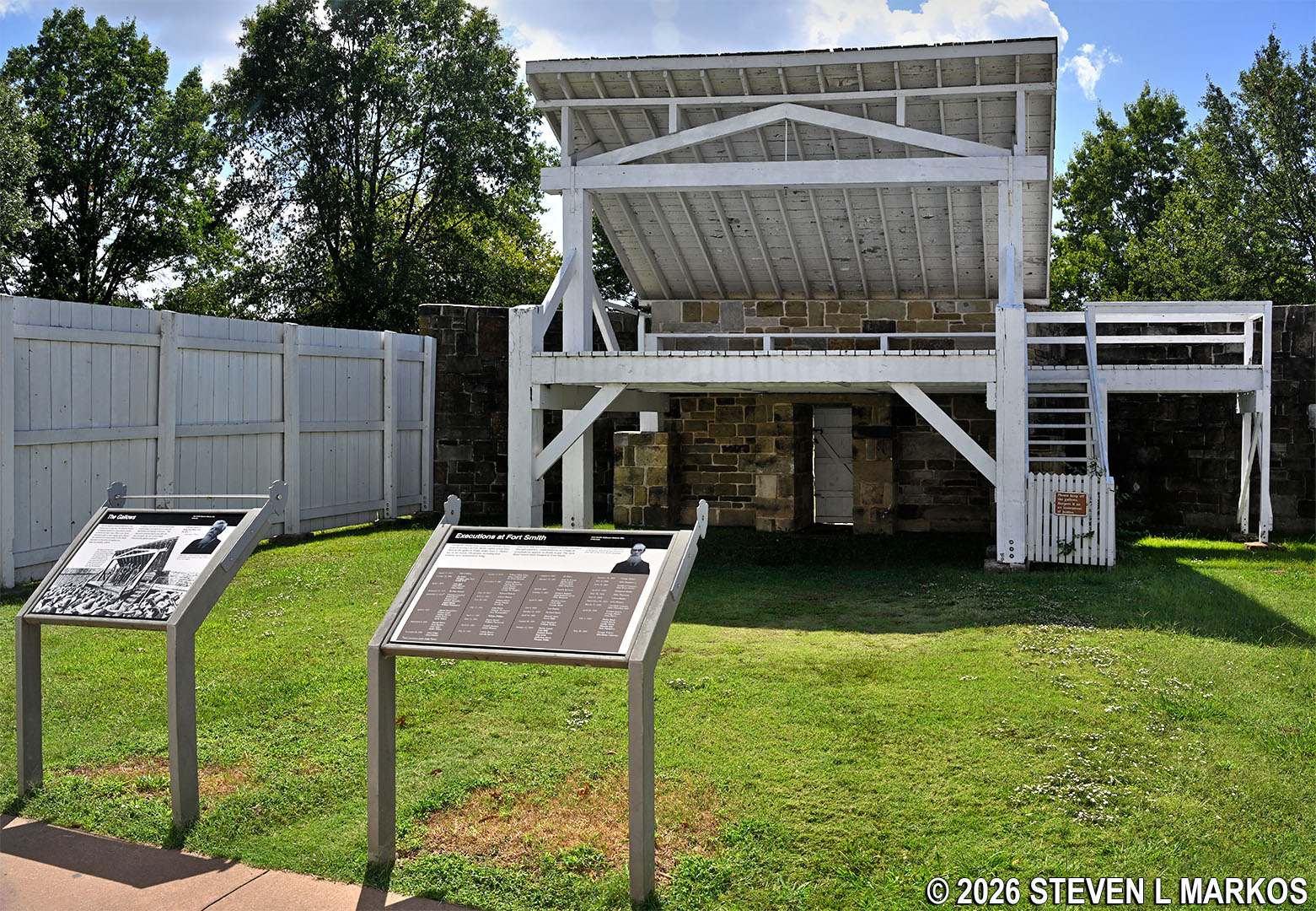 After the federal court’s jurisdiction ended in 1896, the Fort Smith property was deeded to the city of Fort Smith. In the 1950s, efforts began to restore the historic property. An archeological excavation was done at Belle Point in 1959, the courtroom was restored, and the gallows reconstructed. As is typically the case, with funds running low, the city turned to the Federal government to take over the property. Under the Kennedy Administration, Fort Smith National Historic Site was created in September 1961. The park was officially dedicated in 1964 by Lady Bird Johnson, wife of Kennedy’s successor, Lyndon B. Johnson.