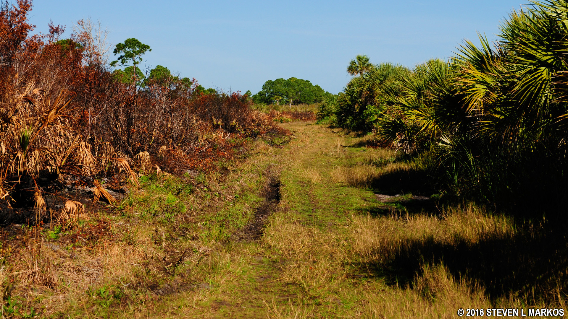 Old road through the marsh, part of the Scrub Ridge Trail at Merritt Island National Wildlife Refuge