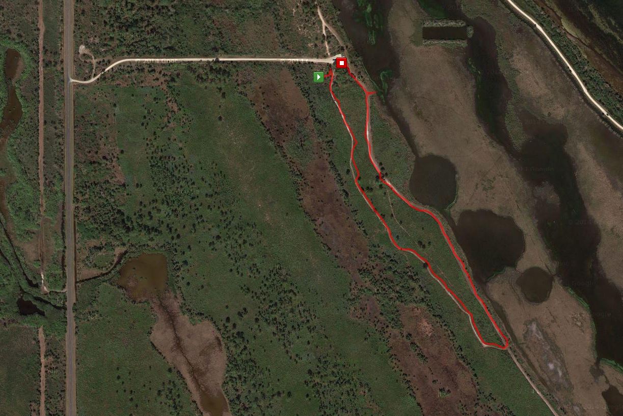 Once you reach the end of the loop and begin the return back to the parking lot, you will find yourself on an old road that runs along a marsh, though brush blocks much of the view. There are a few trails that people have cut that lead to the water, but I don’t really recommend them because they tend to be very muddy, and while the scrubs are not briers, they do have firm branches that can scrape up your legs. Unless you have on boots and long pants, stay away.
