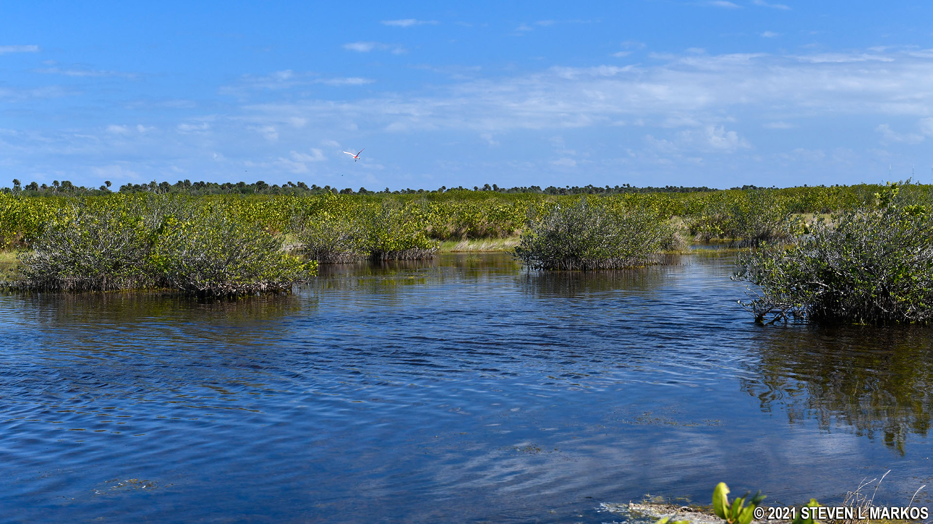 Like most trails in Florida, the Scrub Ridge Trail is flat and easy to hike. It is, however, completely exposed to the sun, so come prepared for that. If you want to photograph birds, hike the trail later in the day, for you will be facing east when viewing the water, and the sun will be in your face in the morning. Give yourself about 45 minutes to complete the hike. Of course die-hard bird watchers could make an entire afternoon of it.