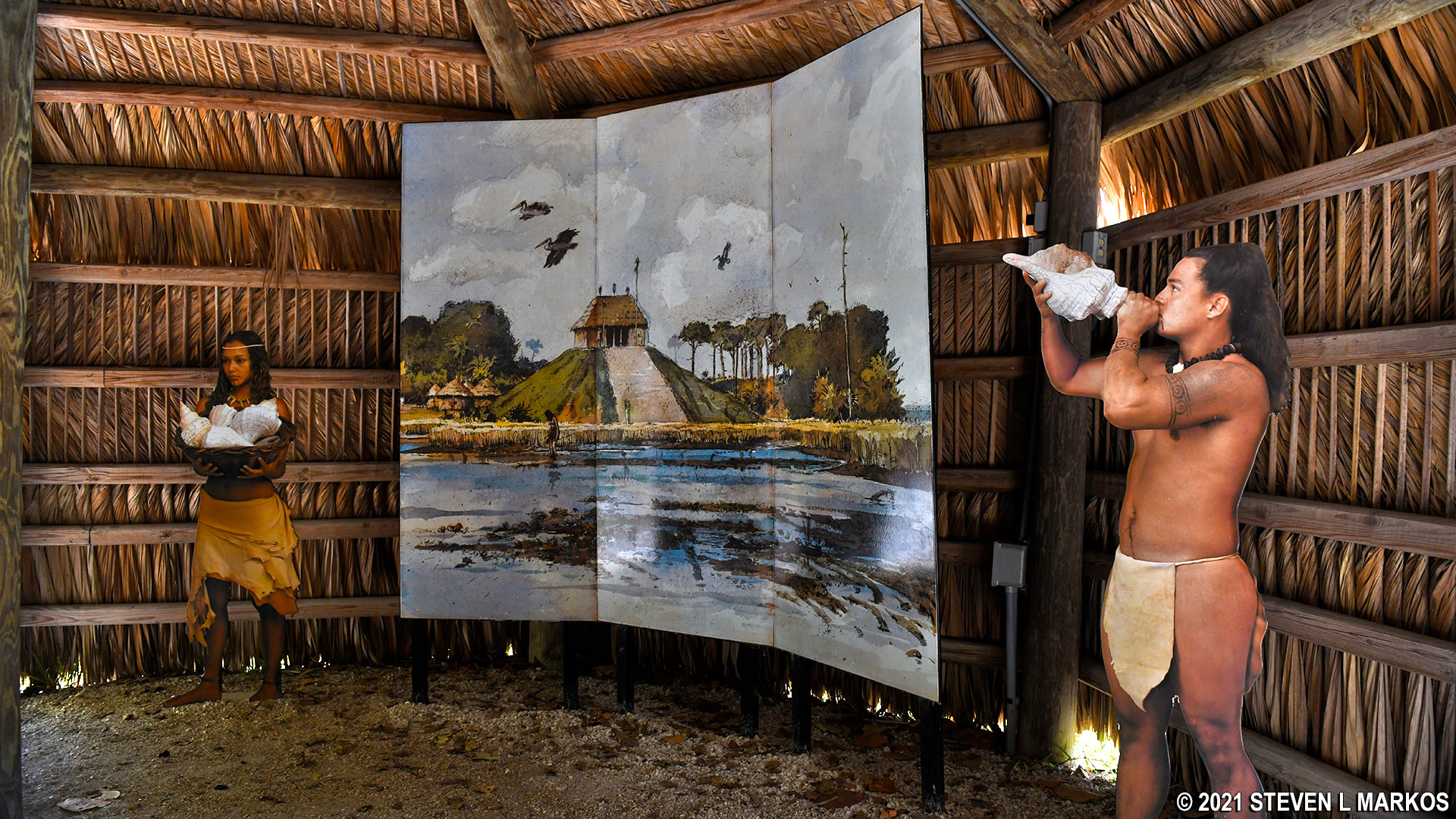 Just outside the village is a replica of a typical Indian hut. Inside are a few graphics and an audio presentation that you can begin at any time by pressing the Play button.