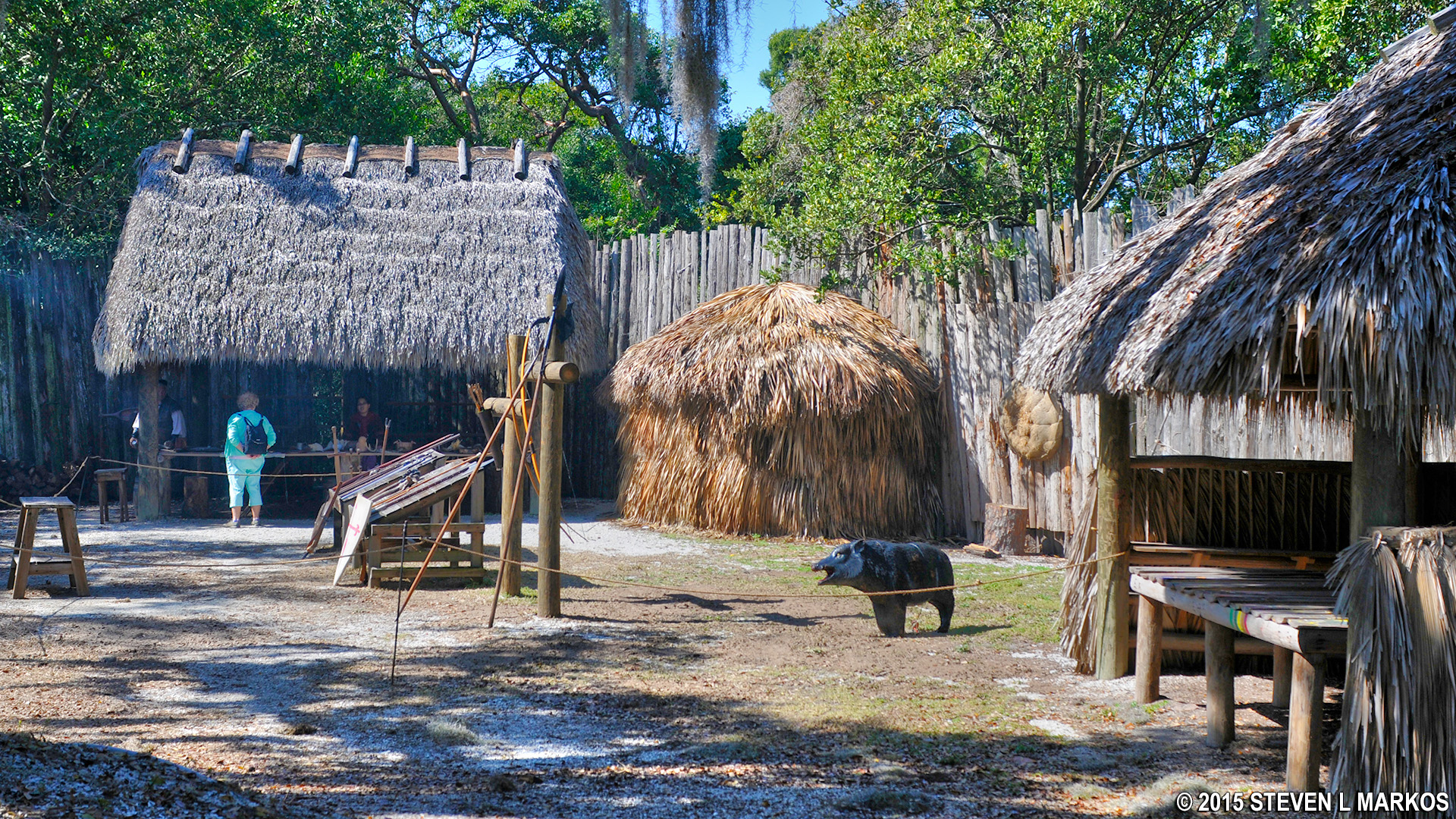 Camp Uzita (or Uçita) at De Soto National Memorial is a reconstruction of a Uzita Indian village that Hernando de Soto and his expeditionary force occupied when they first landed in the Tampa Bay area in May 1539. The Uzita had abandoned the village and the Spanish used it as their base camp. When De Soto departed in July to begin his journey into the interior of Florida, he left behind 100 men to guard the supplies. The camp was eventually abandoned in October when De Soto made his winter camp in Anhayca (near modern day Tallahassee) and ordered the men to join him. From that time on the entire group traveled together.