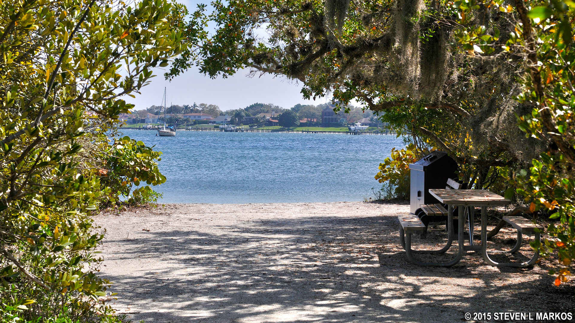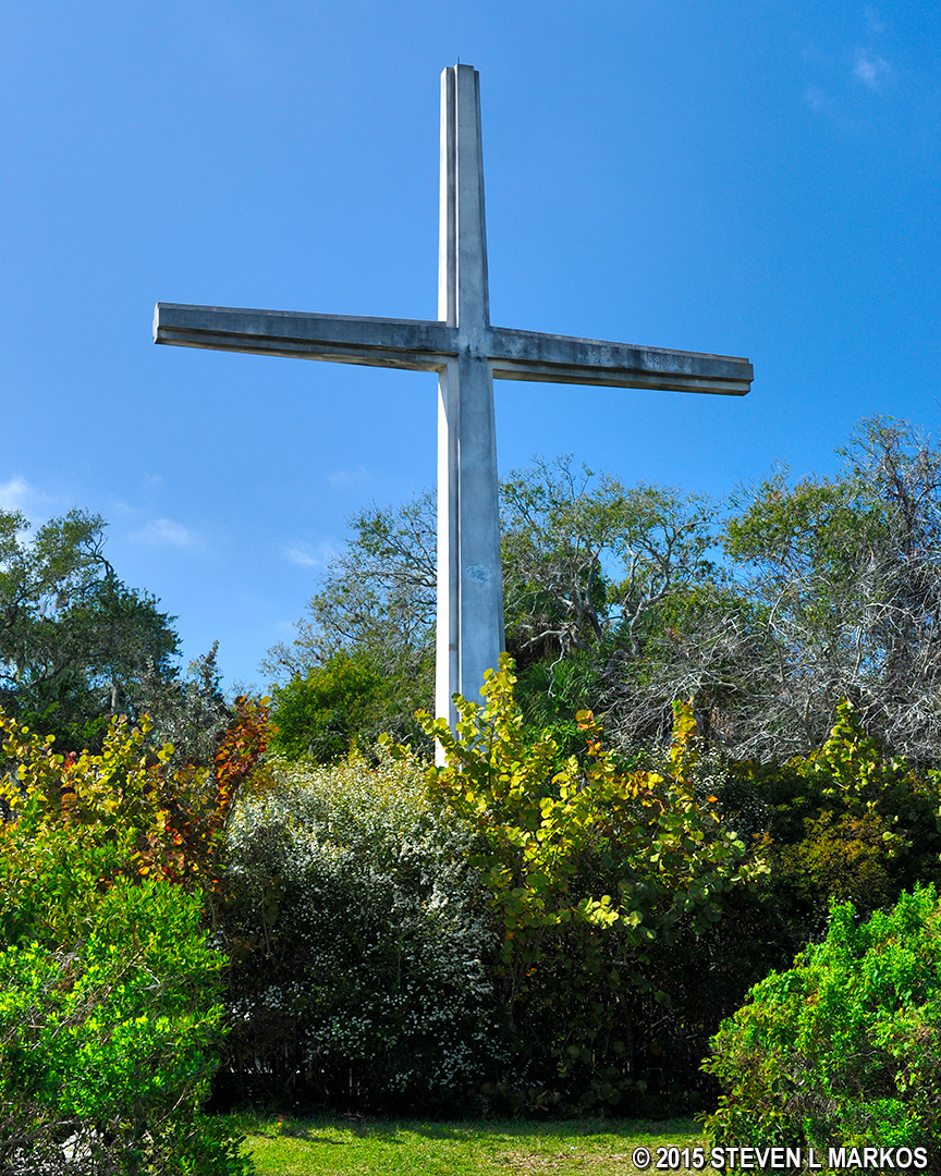 Just a couple minutes past the shell midden exhibit you exit the National Park property and enter into Riverview Pointe. Here you will find two monuments erected by the Catholic Diocese of Venice (Florida). The Holy Eucharist Monument has been here since the 1960s, while the Memorial Cross was erected in 1995. Nice photos can be taken of both if you walk out to the beach area. For more information, see the Monuments web page here on National Park Planner.
