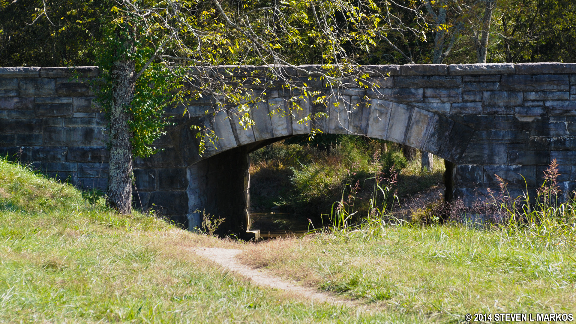 While nearly all of the trails are well marked and lead to little confusion, the start of the General Bragg Trail had me hiking in circles for about fifteen minutes. To avoid my mistakes, park your car in the lower parking lot at the Visitor Center. From there, look across the field for a foot bridge and start hiking towards it (though not marked with signage, this is the Green Trail). When you get to the foot bridge, do not cross it. Go towards and under the arched bridge on your left that takes you under LaFayette Road. There may be some water running under the bridge, but there shouldn’t be much unless it just poured rain. A defined trail leads to the bridge and emerges on the other side. This is the Red Trail, which is the trail the hike starts out on.