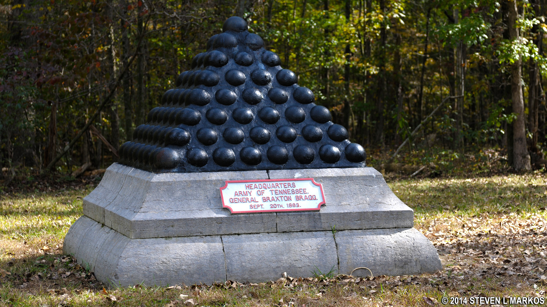 Marker for General Bragg’s Headquarters in the Chickamauga Unit of Chickamauga and Chattanooga National Military Park
