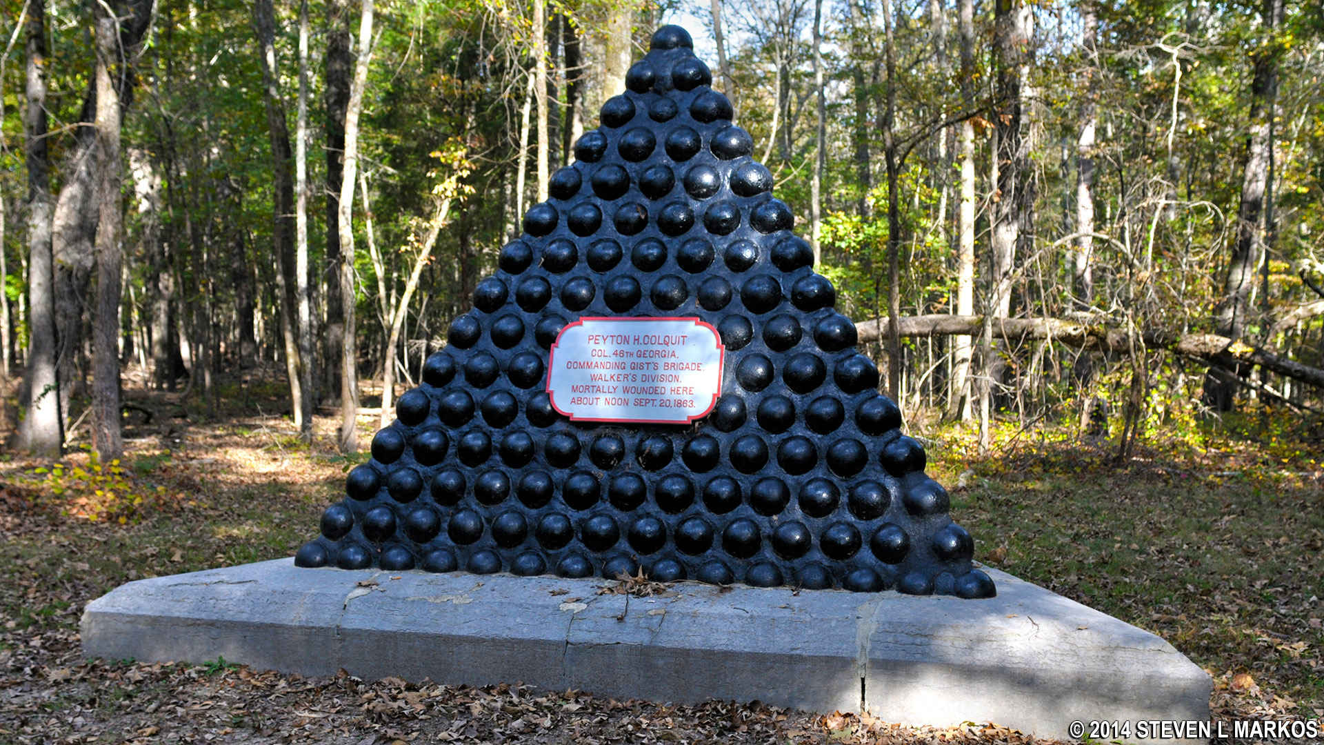 Memorial marker for Colonel Peyton Colquit, killed in action on September 20, 1863, Chickamauga Unit of Chickamauga and Chattanooga National Military Park
