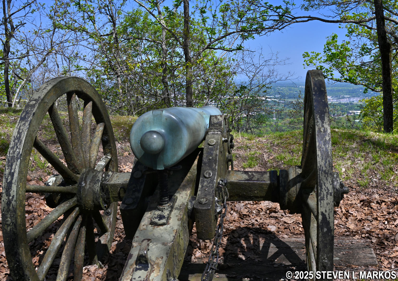 On the weekends, the road is closed to the public, and the only way to the top by vehicle is on the free shuttle bus operated by the National Park Service. The bus leaves every 30 minutes from the Kennesaw Mountain National Battlefield Park Visitor Center. Once dropped off at the top, you have 30 minutes until the next bus comes, which is plenty of time to see the Civil War-era cannons at the summit and to read the information on the wayside exhibits. The first bus leaves at 9:30 AM, and the last bus back to the Visitor Center is at 4:15 PM. No buses run between noon and 1 PM. If you miss the last bus, you can walk back along the road or hike down the mountain on the 1-mile Kennesaw Mountain Summit Trail. The bus does not operate on Memorial Day, Independence Day, Labor Day, and the day after Thanksgiving.