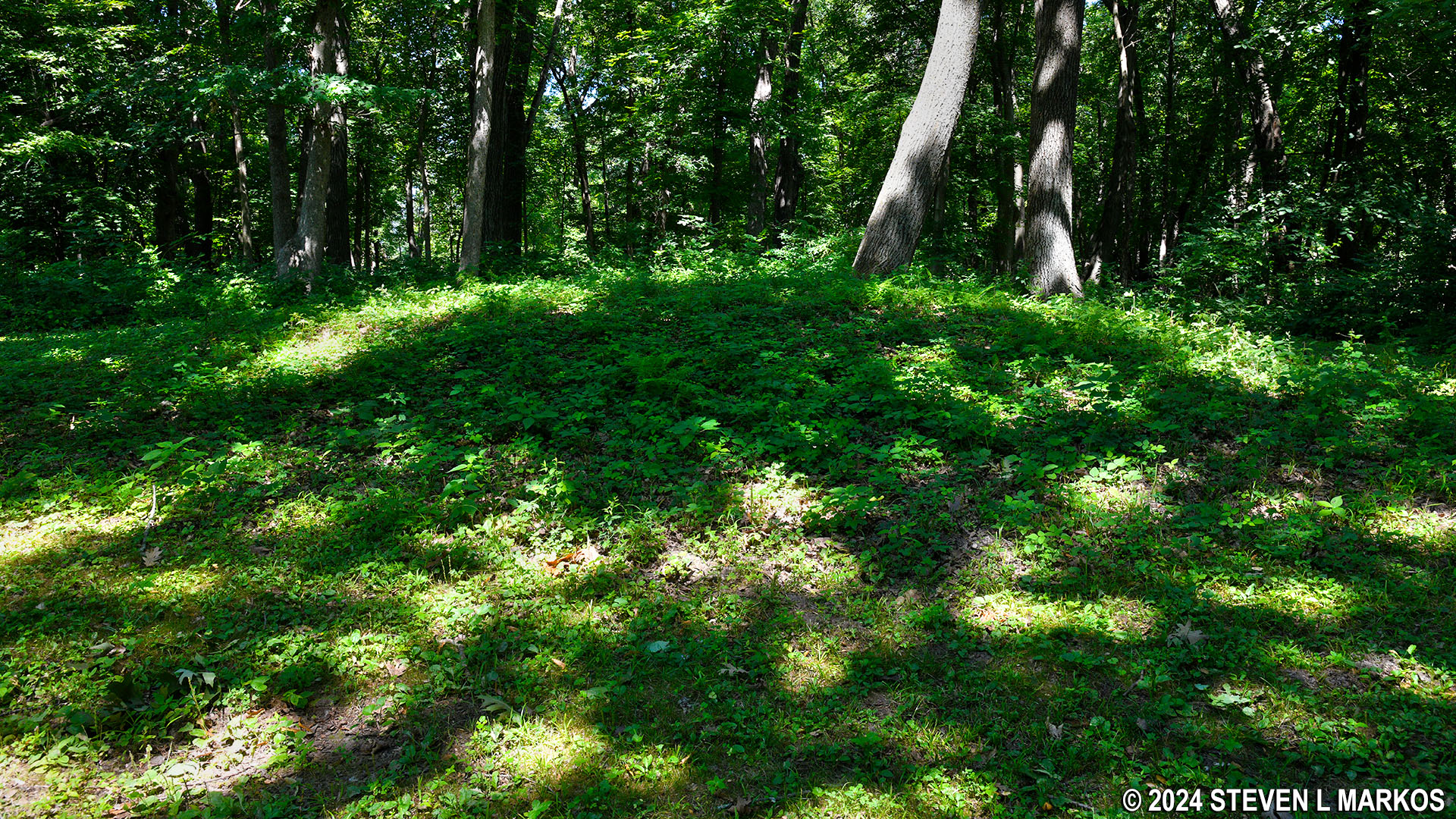 If you continue to walk farther down the trail and along the mounds, you can make out the last three conical mounds with dips between them. It is easier to see the gaps in person than it is in photographs.