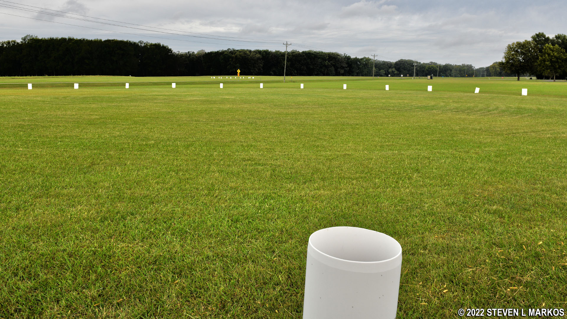 PVC pipes mark the location of ancient post holes at Poverty Point National Monument