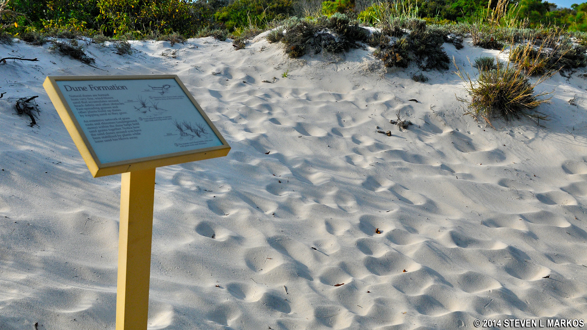 Unlike a dirt trail where the path has been etched into the earth by hundreds of other hikers before you, the Life of the Dunes Trail is made of sand, and sand can change. While there are no confusing intersections or unmarked side trails, there are points were the path becomes vague. If in doubt, follow the wooden fence that has been put up along portions of the trail or look for directional markers, which are either arrows or orange squares on posts.