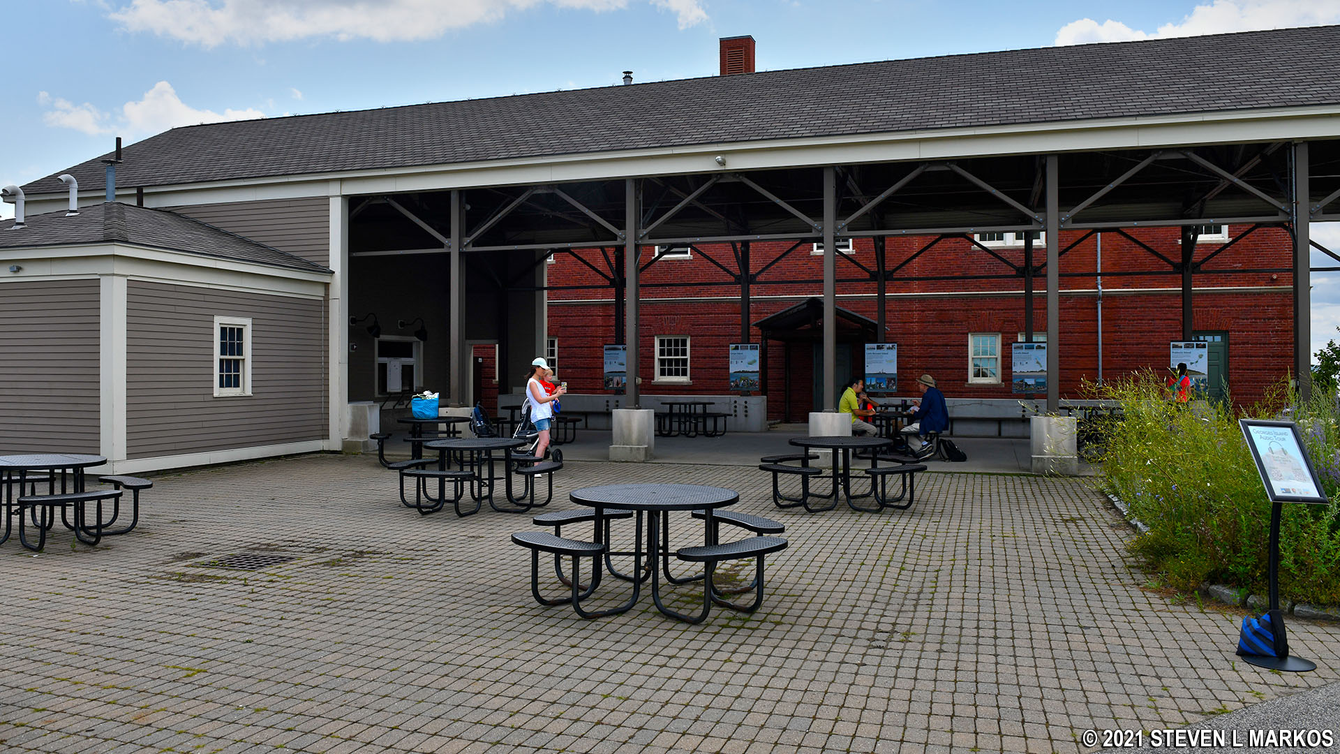 Hot dogs, chips, pop corn, ice cream, and drinks are available for sale Wednesdays through Sundays at the covered pavilion next to the Visitor Center on Georges Island in Boston Harbor. Cash and credit/debit cards are accepted for payment.