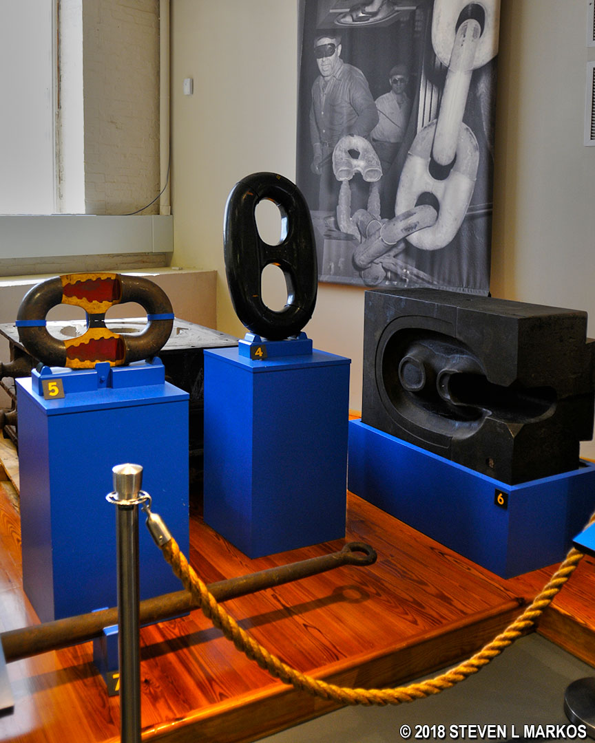 Die-lock chain exhibit at the Charlestown Navy Yard Museum inside the visitor center, Boston National Historical Park