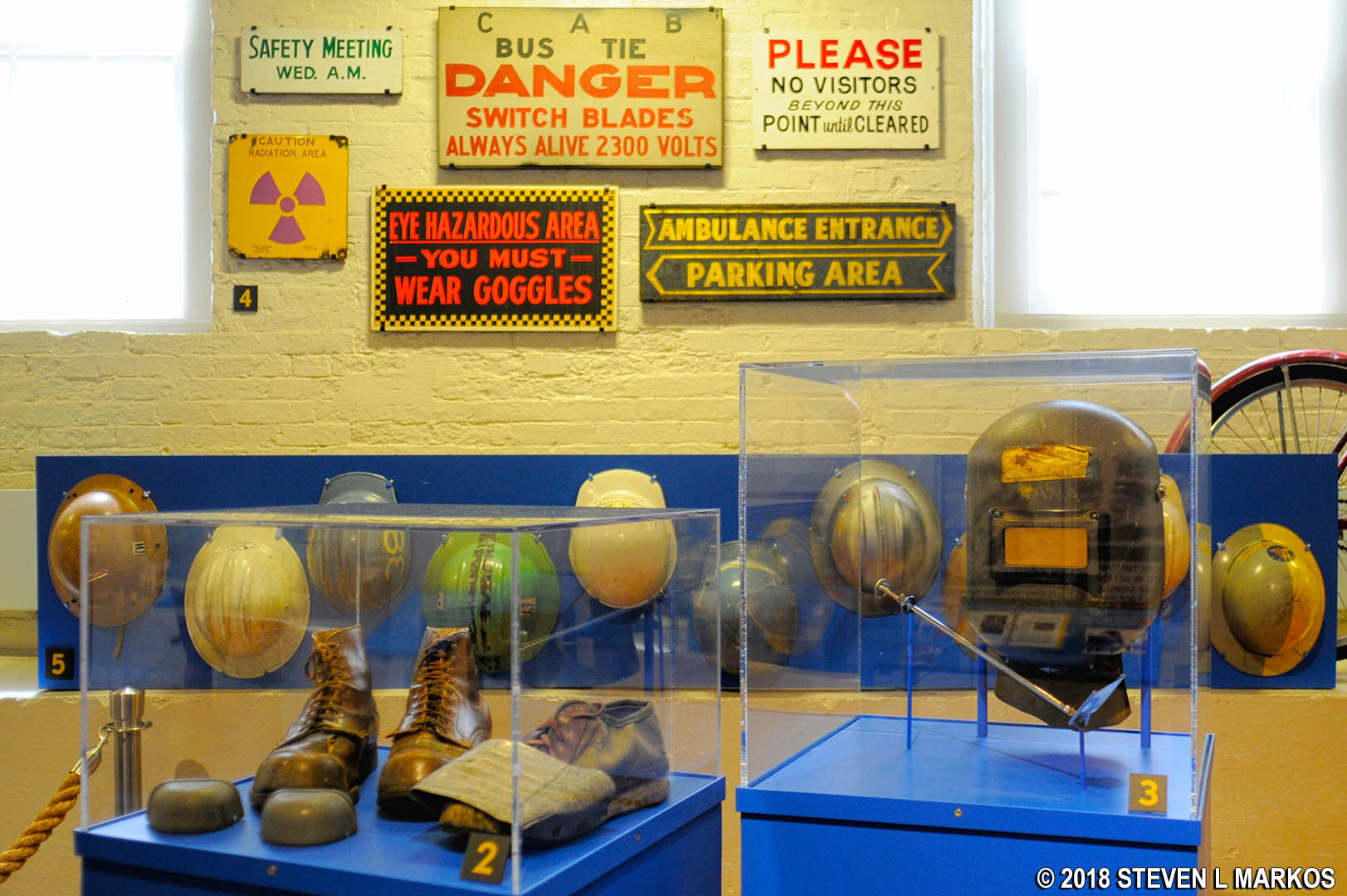 Worker safety equipment on display at the Charlestown Navy Yard Museum inside the visitor center, Boston National Historical Park