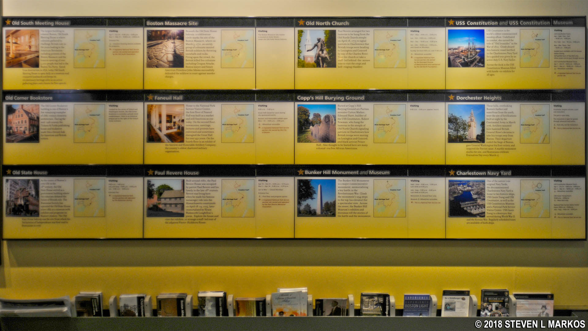 Information about Freedom Trail attractions on the lower level of Faneuil Hall, Boston National Historical Park