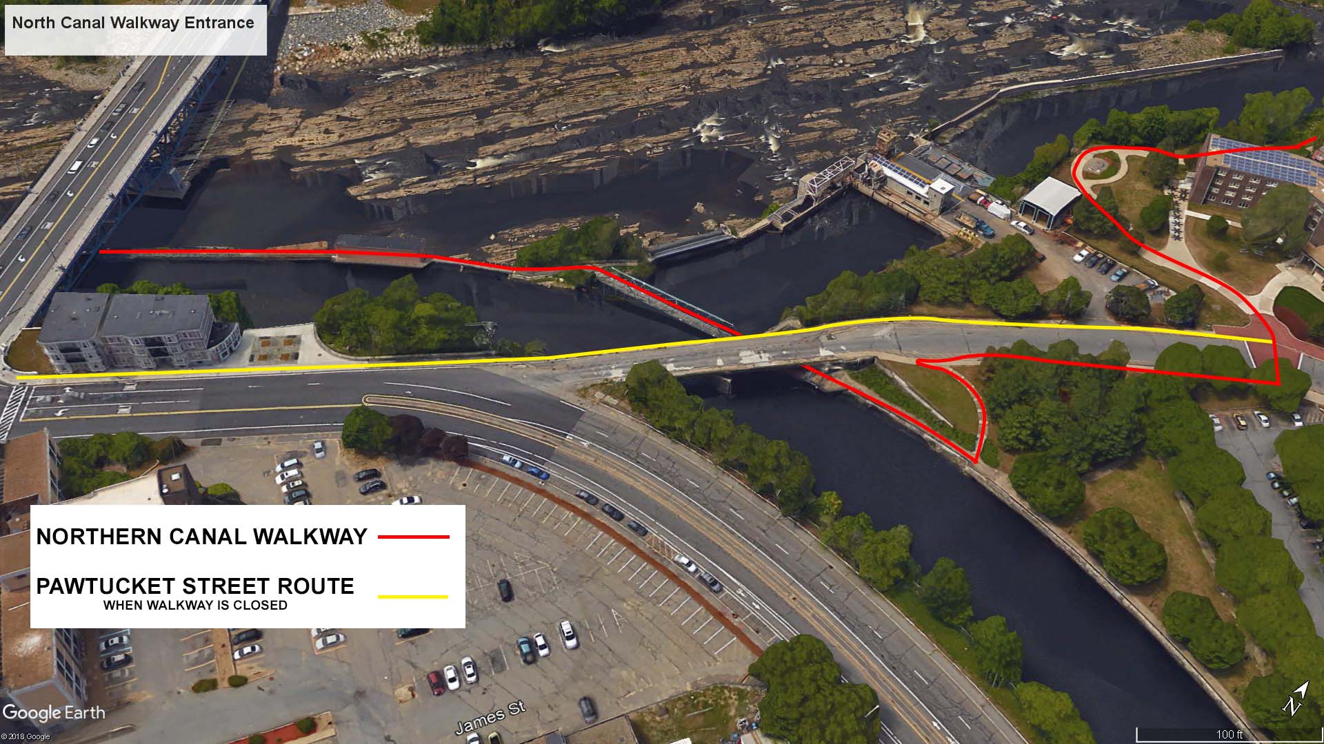 The Northern Canal Walkway is the highlight of the Riverwalk Ramble. Keep in mind that it is only open from May 15th to October 15th between the hours of 9 AM and 5 PM, and even then it can be closed if the water is too high. When closed, you must walk along Pawtucket Street until reaching School Street / Mammoth Road .4 miles ahead. That’s just a walk through a city, and there is nothing interesting about it.