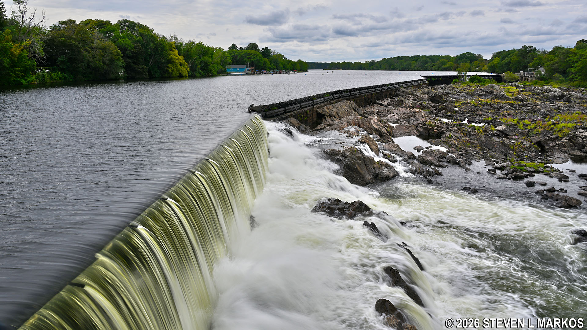 The Pawtucket Dam was originally built between 1826 and 1833 to form a pool that could be used to keep the Pawtucket Canal filled with water year-round. The dam was renovated between 1847 and 1875, and this is largely the dam that still stands today.