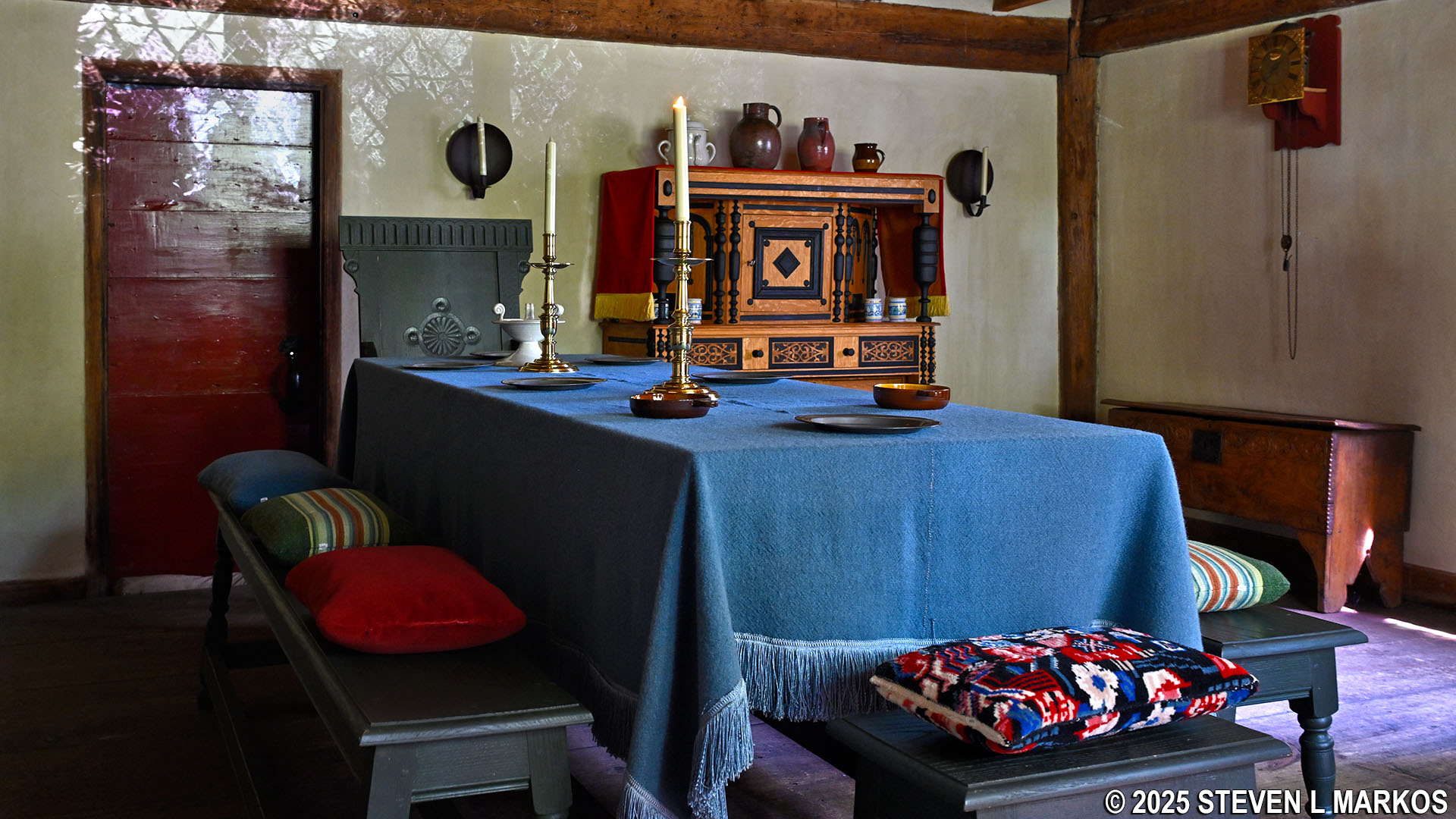 The tour only includes the lower floor of the Iron Works House. A couple rooms are furnished with antique and reproduction furniture of the time period, but no original furniture remains. Probate records still exist—records of what was in a house when the owner died—and these were referred to when determining what sort of furniture to include. Other than that, it’s just a guess as to what the rooms looked like. Most of the decorations are based on typical furnishings of other homes in the late 1600s.