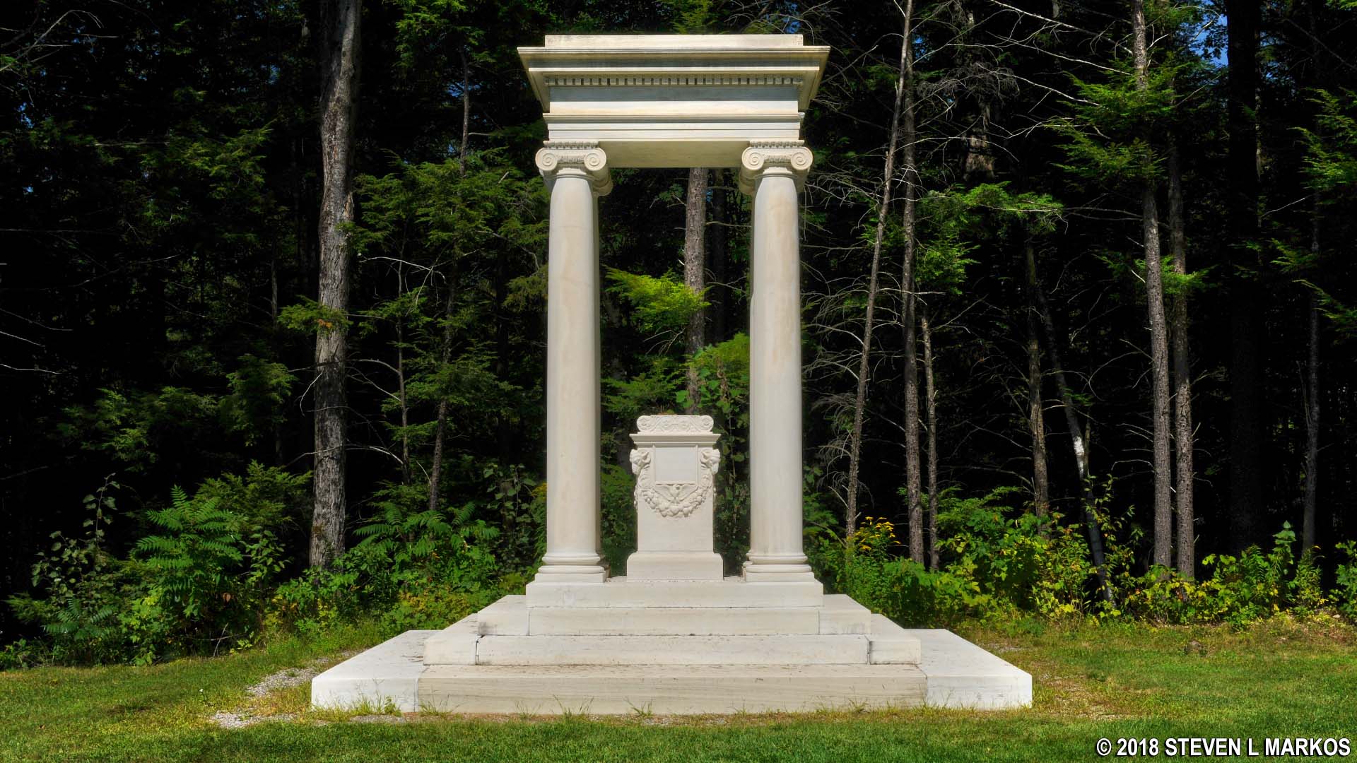 The trail comes out at The Temple, which is where the ashes of Saint-Gaudens and some of his family members are interred.
