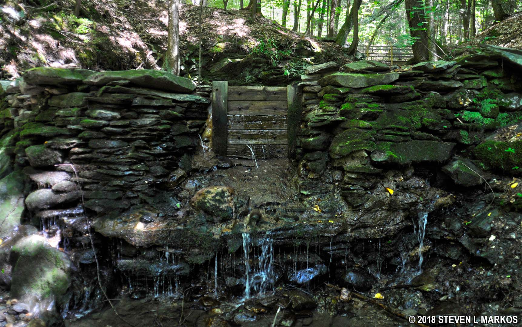Saint-Gaudens and his assistants built the dam and swimming hole in the mid-1880s. It remained in use until 1898, at which time Saint-Gaudens built a swimming pool behind the Little Studio (the National Park Service filled it in for safety reasons). No longer used, the dam and pond deteriorated until being restored in the 1930s by the Civilian Conservation Corps (CCC), an organization conceived by the Franklin Roosevelt administration to help young, unmarried men get back to work in the wake of the Great Depression (1929-39). Many of the national and state park trails and campgrounds were built by members of the CCC during this time. The dam has since been renovated, once in the 1980s and again in 2008.