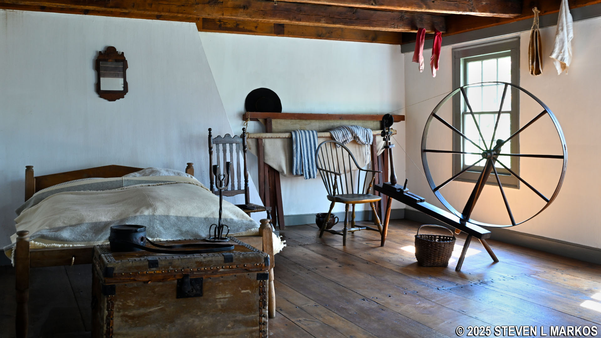 The servants lived on the upper floor in the two rooms on the east side of the Ford Mansion above the kitchen and pantry. The ceiling remained unfinished because there was no need to spend more money than necessary on the servants’ quarters.