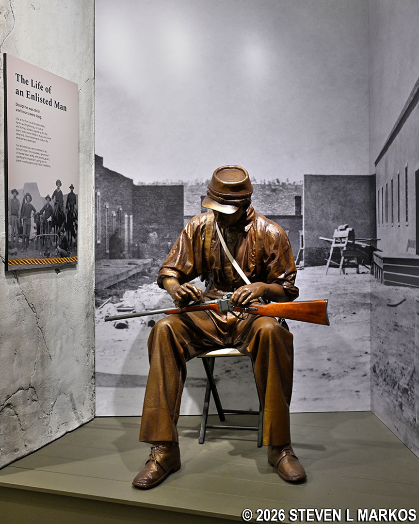 Bronze statues of the types of people who populated Fort Union are incorporated throughout the exhibits to give visitors a sense of what life was like at the fort. The majority of the men were in the military. For the few soldiers who were married, their wives were allowed to live at the fort only if they agreed to work as a laundress.