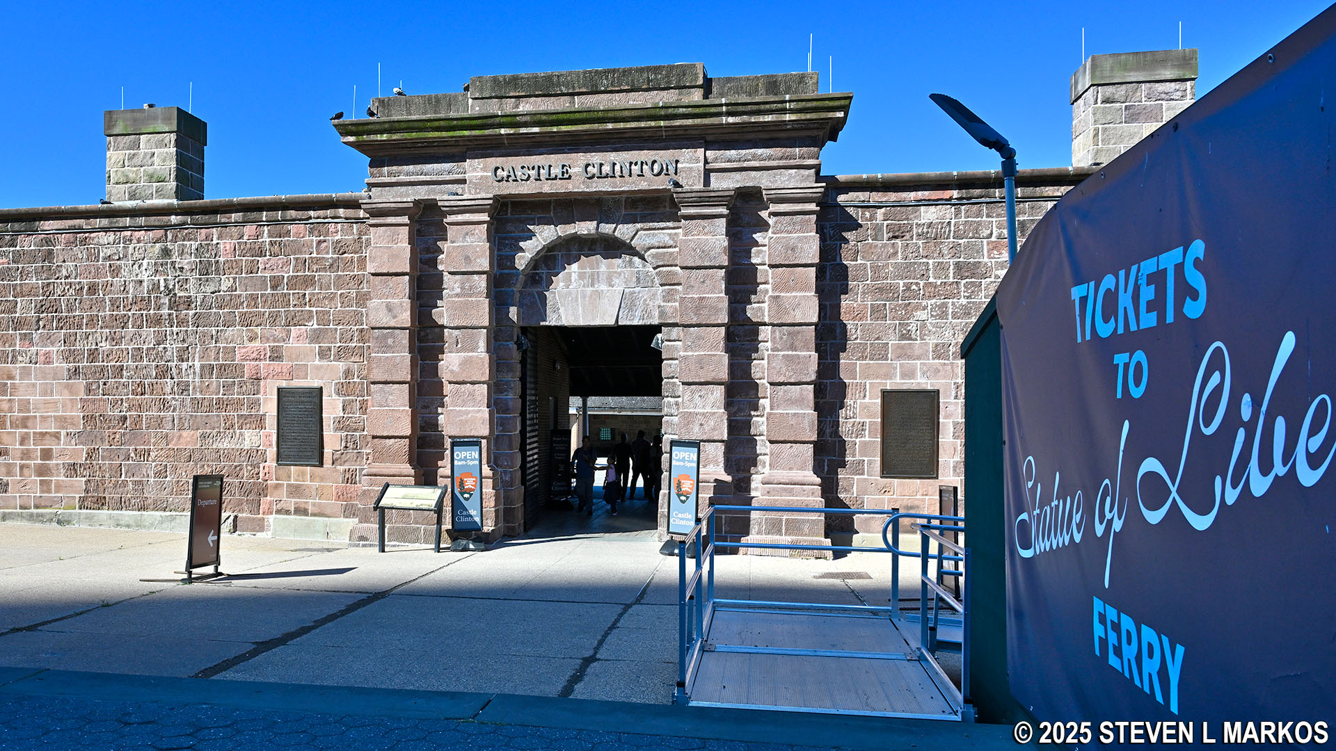 Of all the United States military forts, none have had a more colorful life than that of Castle Clinton. It began as the Southwest Battery, a small, D-shaped fort built between 1808 and 1811 to protect New York City, then later became an opera house, an immigration station, and an aquarium. By the time the National Park Service saved it from the wrecking ball in 1946, nothing remained of the original structure except for the outer walls. The fort was restored as much as possible to its 1811 appearance and reopened to the public in 1975 as Castle Clinton National Monument, restoring the name that the fort was given in 1817 to honor Dewitt Clinton, a popular New York political figure during the early 1800s.