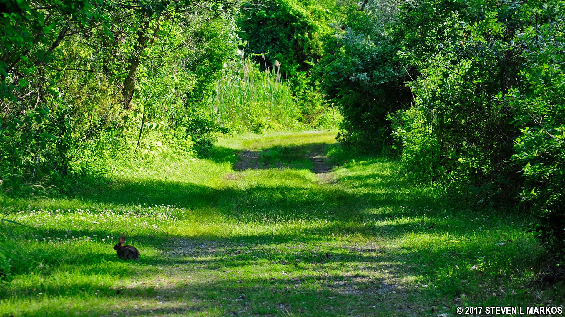 Rabbit on the hiking trail in the North Forty Natural Area at Floyd Bennett Field, Gateway National Recreation Area