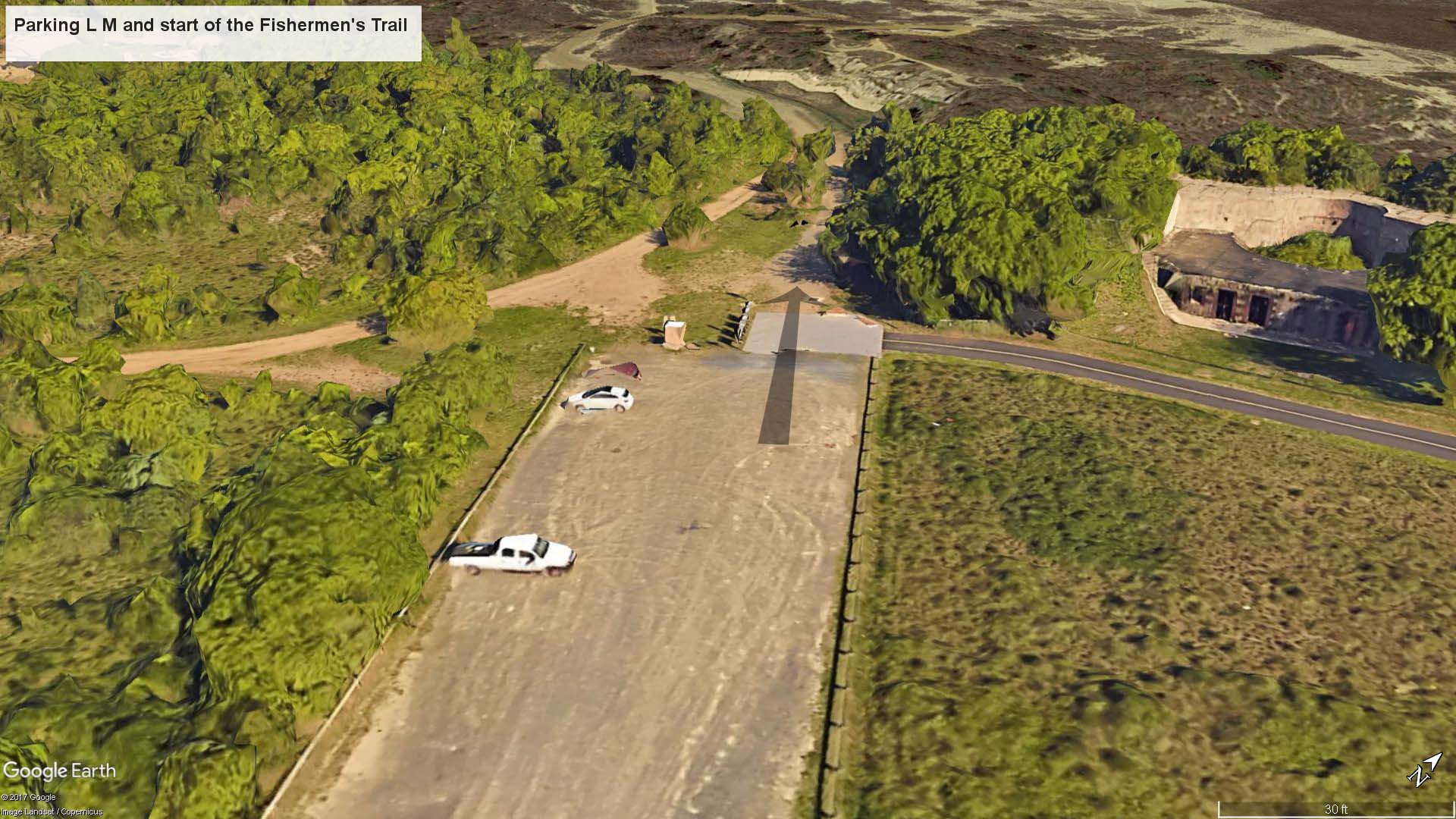 The Fishermen’s Trail begins at the end of Parking Lot M. This is not a beach access lot, so there is no fee to park here. There is no sign that identifies the trail, so be sure not to confuse it with a dirt road to the left of the parking lot that heads south.