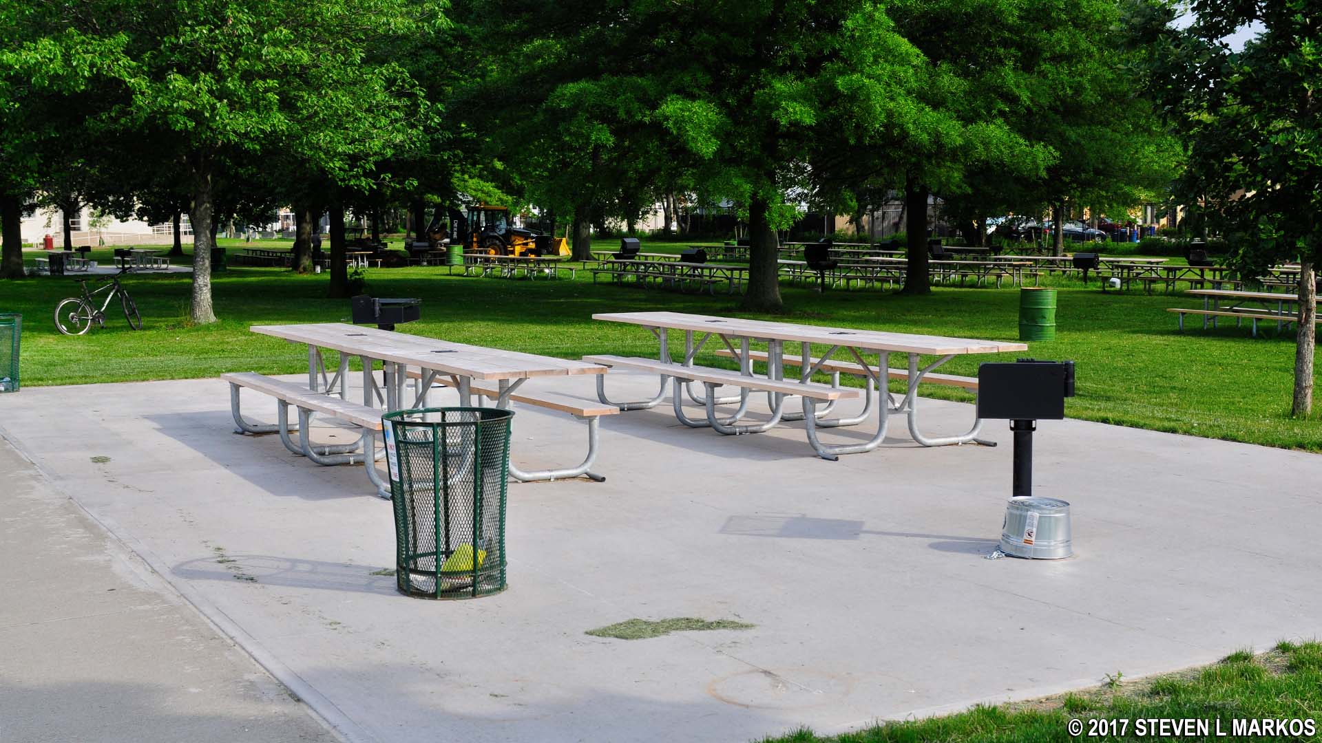 There are two paved areas with tables and grills that are accessible to those in wheelchairs. Both are located right next to the sidewalk that leads from the parking area.