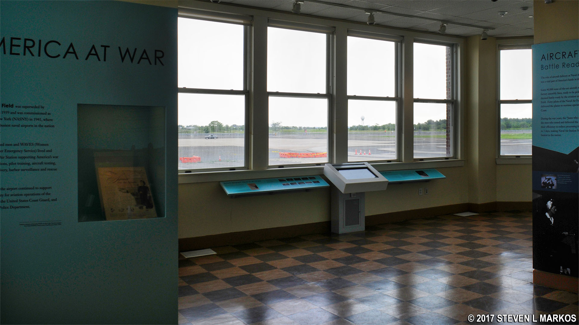 Military section of the museum at the Ryan Visitor Center looks out over Floyd Bennett Field, Gateway National Recreation Area