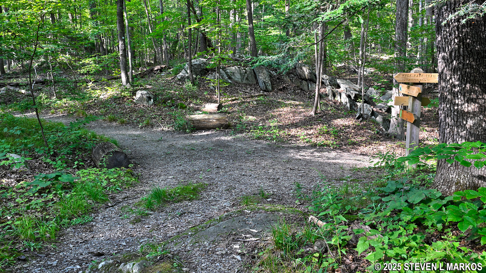 Split with the Hyde Park Trail on the loop portion of the Forest Trail, Home of Franklin D. Roosevelt National Historic Site