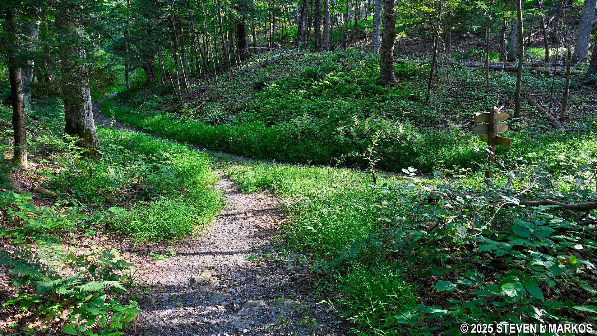 Eastern intersection of the Forest and Meadow trails at Home of Franklin D. Roosevelt National Historic Site