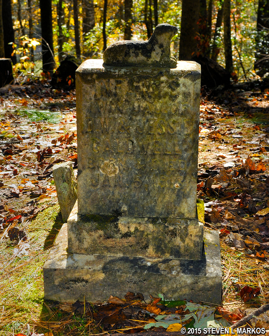 Grave of ? Caldwell (Born and Died 1/5/1913) in the Caldwell Cemetery, Great Smoky Mountains National Park
