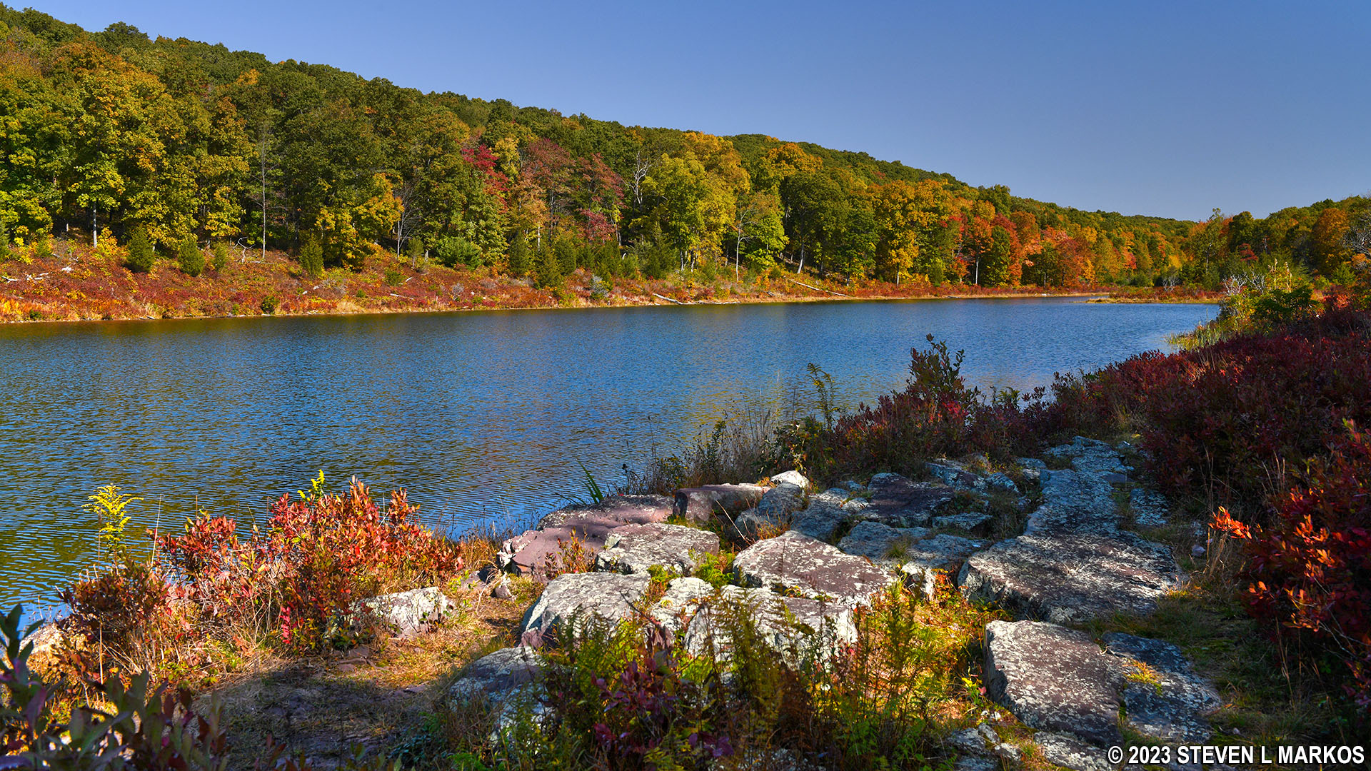 Typical terrain along the Inner Blue Mountain Lake Trail as it follows the lake’s northern shore, Delaware Water Gap National Recreation Area