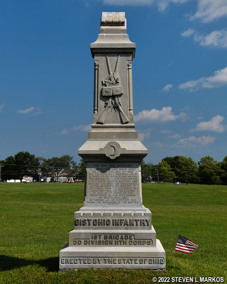 The following are some of the monuments near the Oak Ridge and Barlow Knoll stops on the Gettysburg Battlefield Tour. (Dedication date is in parenthesis.)