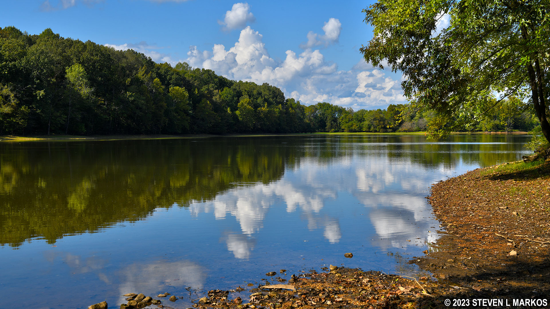 Level terrain on the Fort Donelson National Cemetery Trail when Indian Creek widens to form a small lake