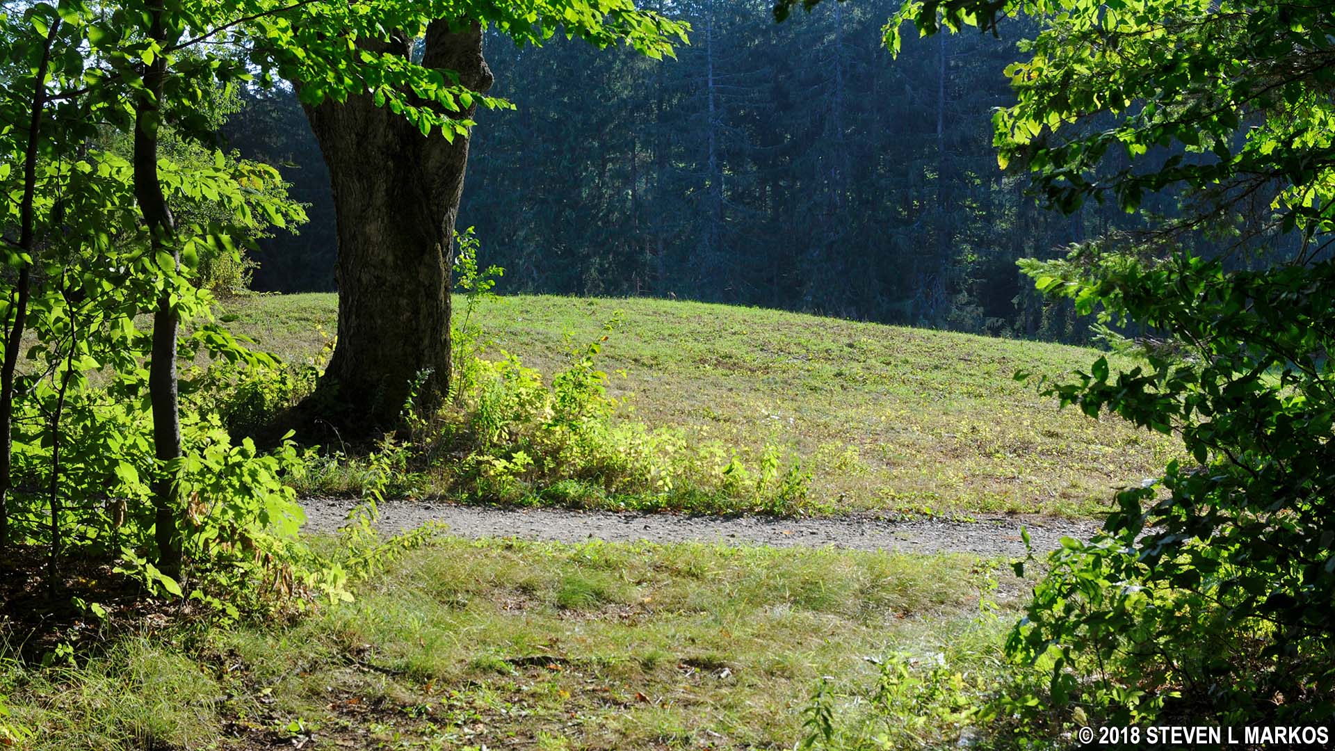 The North Peak Trail makes a very sharp right towards the bottom of the hill, then intersects with the One Less Traveled Trail only a few yards farther down. If you take a right, for a short stretch the North Peak and One Less Traveled trails are the same. However, take a left and head towards French Lot, a field that has been around since Billings Farm was established.