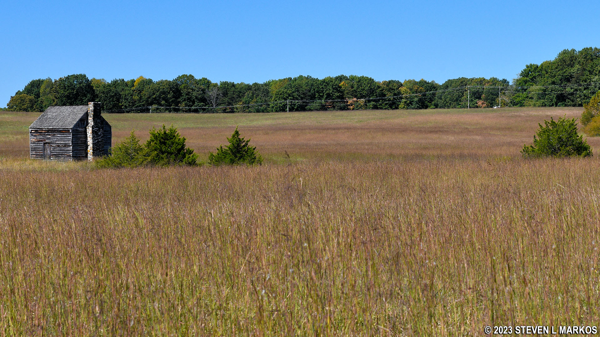 After a quarter mile, the trail enters the forest, but just before that you can get a look at the Conner-Sweeney Cabin in the distance. It’s a good ways off, so short of climbing a barb-wire fence and hiking across a meadow and picking up ticks or whatever else lives in the tall grass, this is as close a look as you’ll get. The cabin was built by Jennings Conner around 1866. His wife was Missouri Sweeney, sister of Joel Sweeney, the famous banjo player.