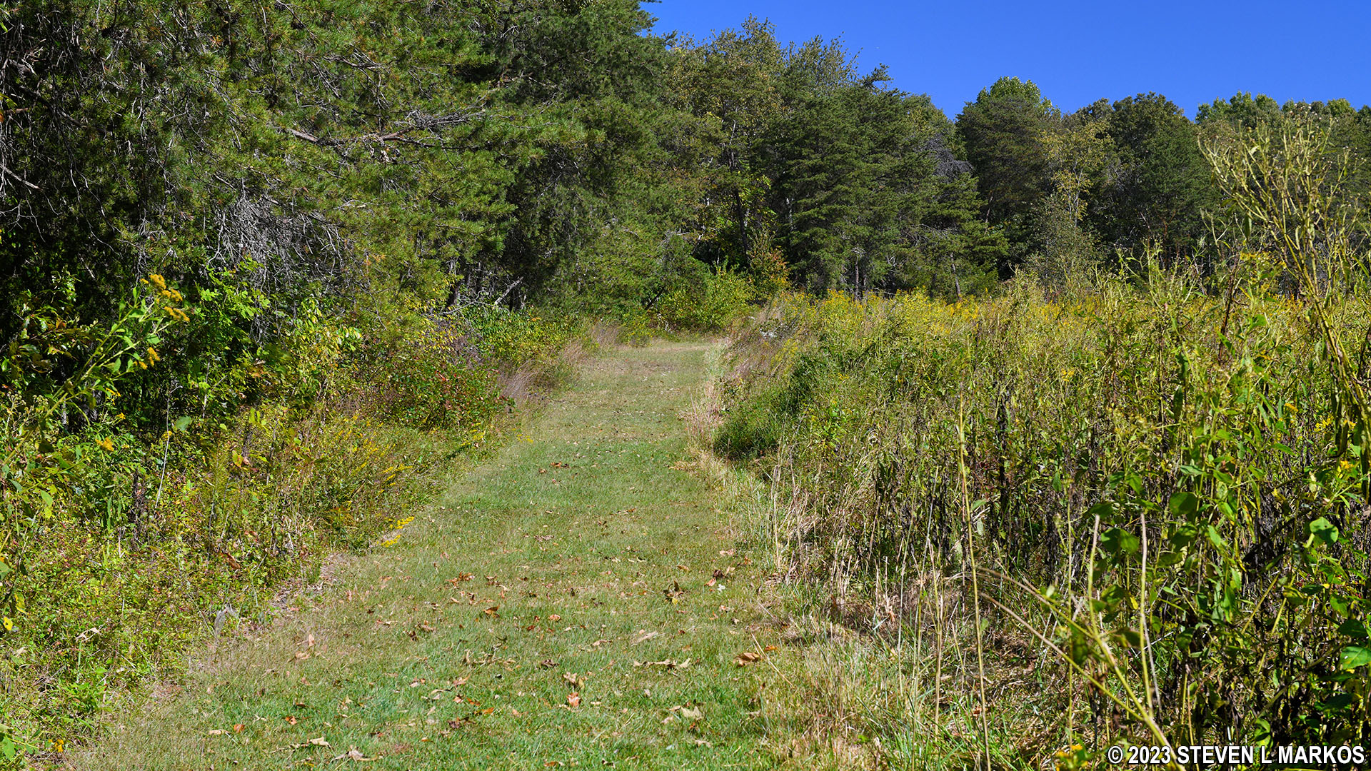 Start of the Ferguson Wildlife Trail at the intersection with the Sweeney Trail, Appomattox Court House National Historical Park