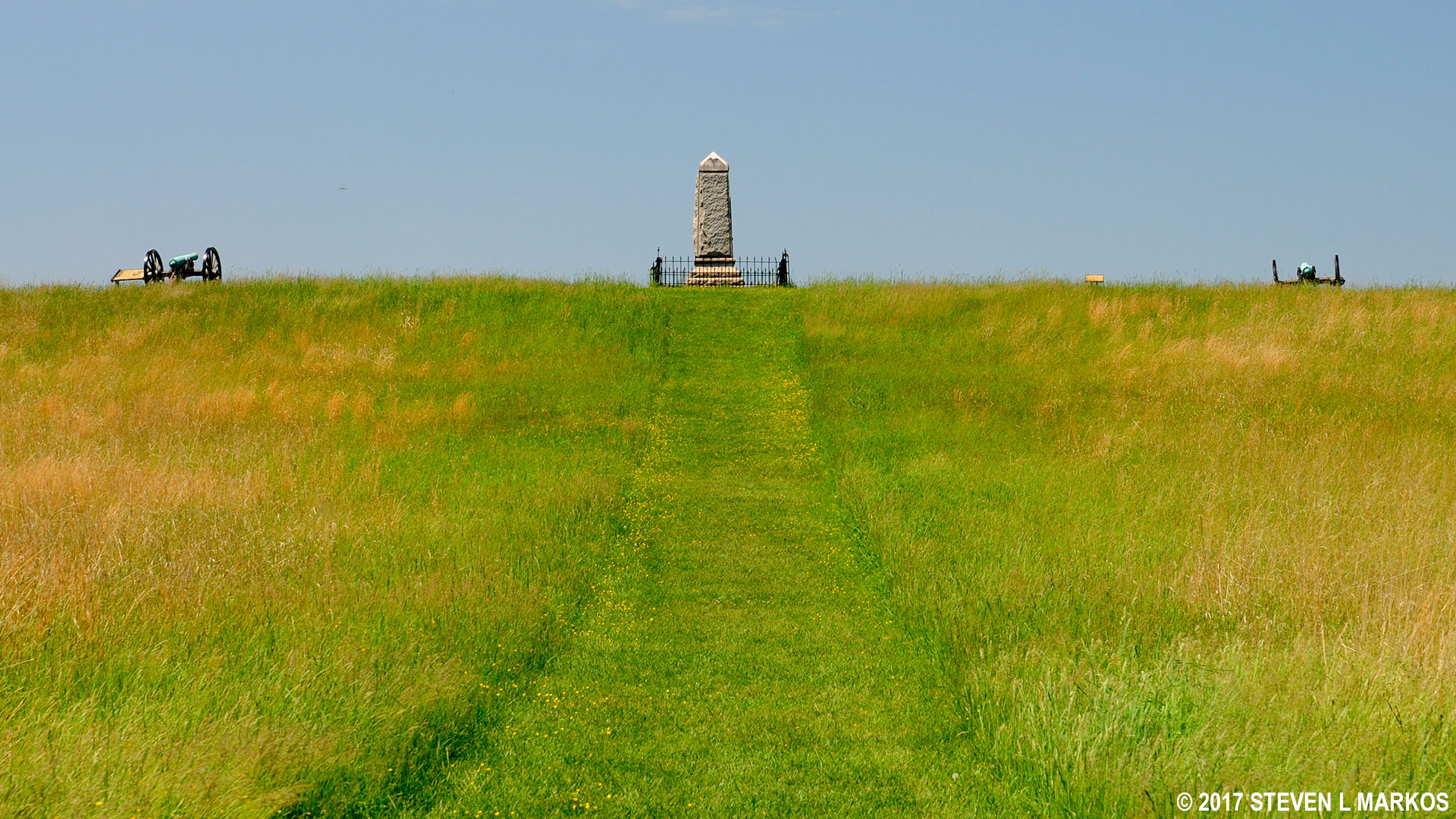 In addition to the monument are two cannons that mark the position of Union artillery on August 29 and 30, 1862. The cannons aim towards the Confederates at Brawner Farm.