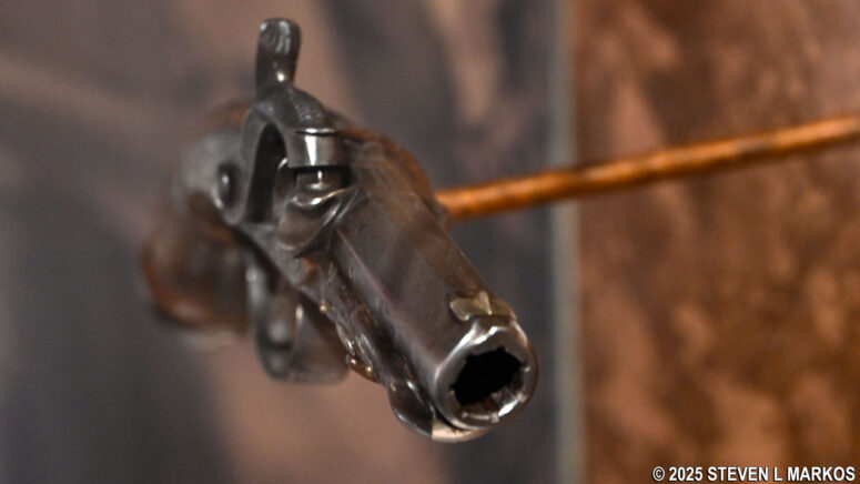 .44-caliber Derringer pistol used to kill Abraham Lincoln on display in the museum at Ford’s Theatre National Historic Site