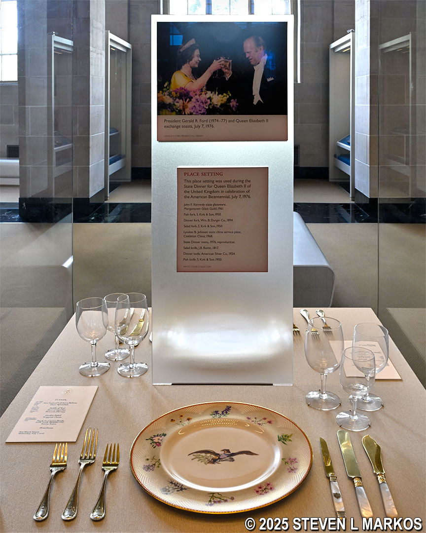 Place setting used to serve Queen Elizabeth during the American Bicentennial celebration in 1976 on display in the White House Visitor Center